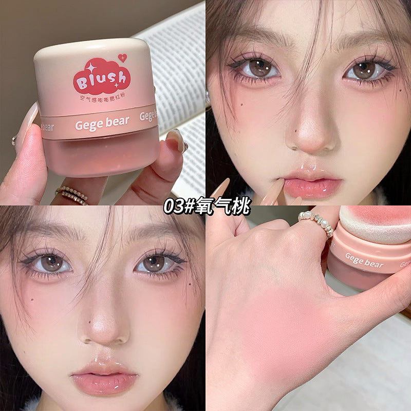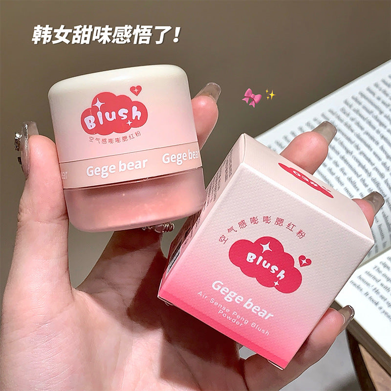 El Air Sense Blush Powder de Gege Bear es un rubor en polvo ultrafino con textura sedosa y ligera que se funde perfectamente en la piel, dejando un acabado natural, suave y luminoso.